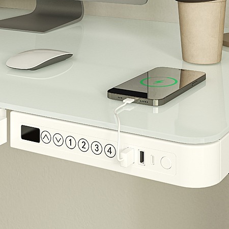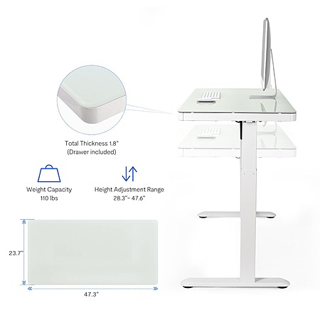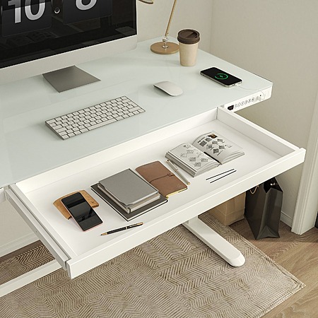 48"x24" FlexiSpot Comhar Standing Desk with Drawer (White, Glass Desktop)