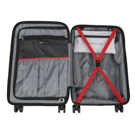 Carry everything you need for your upcoming trip in this SwissTech Hybrid Luggage Set. This set includes a 21 inch hardside suitcase and a backpack. The backpack features two padded shoulder straps and a top carry handle. It is also made with a very durable heathered polyester material. The bag features 1 main body pocket with metal hardware and zipper pullers. Interior pockets are fully lined and offer a spot to hold tablets or small laptops. The suitcase is made of a durable ABS material. It also comes with multiple different pockets inside the main compartment. The suitcase also opens in the front for quick access to your smaller belongings. Carry everything you need with the SwissTech 2-Piece Hybrid Luggage Set. Available exclusively at Walmart and Walmart.com