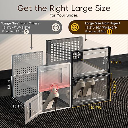 12-Pack Kuject XL Stackable Shoe Storage Boxes (13.2x10.1x6.42")