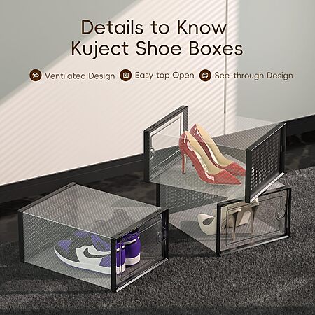 KujectDirect via Amazon has 12-Pack Kuject XL Stackable Shoe Storage Boxes (Black) on sale for $21.96 when you clip the $10 Off coupon on the page and apply promo code AA8MC926 during checkout. Shipping is free.