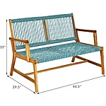 Tangkula Outdoor Acacia Wood Bench Loveseat w/ Teak Oil Finish & Rope Weave