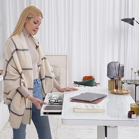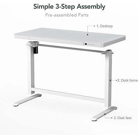 Prime Members: FLEXISPOT 48" Electric Glass Standing Desk with Drawer & Quick Install w/ USB Charge Ports (White) $298.99 + Free Shipping