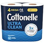 [S&S] $4: 4-Pack Cottonelle 1-Ply Toilet Paper Mega Rolls (Ultra Clean) at Amazon