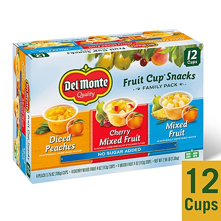 12-Pack 4-Oz Del Monte No Sugar Added Fruit Cup Snacks (Variety Pack) $5.50 w/ S&S + Free Shipping w/ Prime or on $35+