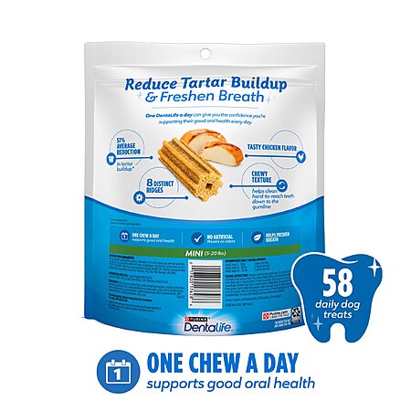 58-Count 17.1-Oz Purina DentaLife Daily Oral Care Dog Treats (Mini) on sale for $10.79 - 35% when you 'clip' the coupon on product page - 5% when you check out via Subscribe & Save =