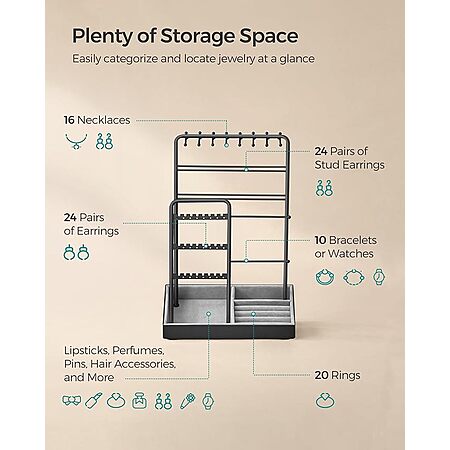 SONGMICS Jewelry Display Stand with Organizer and Metal Frame $10.19 + Free Shipping w/ Prime or $35+