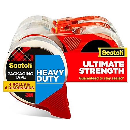 Amazon has 4-Pack Scotch Heavy Duty Shipping Packing Tape w/ Dispensers (Clear) for $16.97. Shipping is free w/ Prime or on $35+ orders.