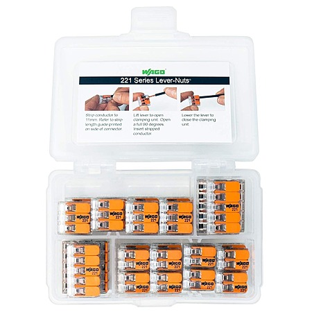 • Peppy Products LLC via Amazon has 36-Pc WAGO 221 Lever-Nuts Compact Splicing Wire Connector Assortment w/ Case on sale for $18.95. Shipping is free w/ Prime or on $35+ orders.