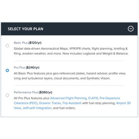 ForeFlight annual subscription 20% off for pro plus and performance plus plans $192