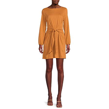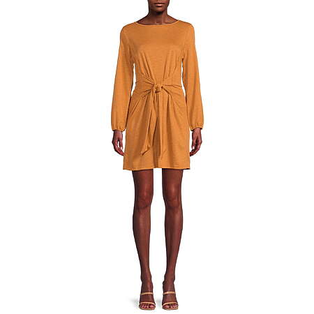 Nine.Eight Women’s Dresses: Tie Waist Knit Cocktail Dress (Yellow, L-2XL)