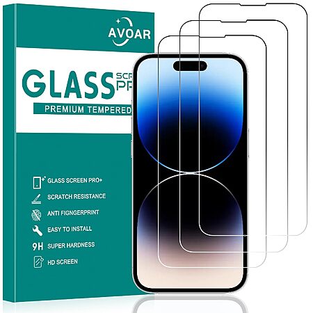 Limited-time deal: AVOAR 3 Pack Screen Protector for iPhone 14 Pro, for iPhone 14 Pro Screen Protector, 6.1 Inch HD Clear Tempered Glass Full Screen Case Friendly, Anti-S - $1.99