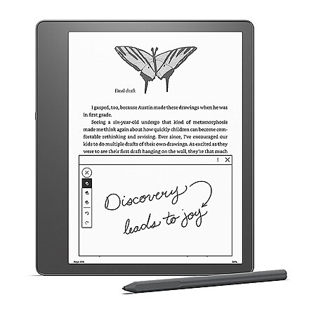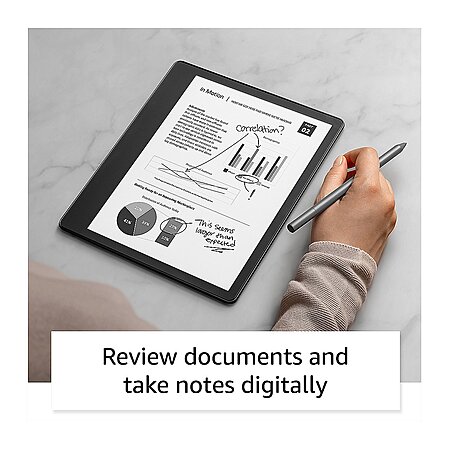 | Product Description: | Read. Write. Take notes. Make lists. Doodle the day away. The choice is yours with the Kindle Scribe. With a 10.2" glare-free Paperwhite display and Basic Pen, you can devour your favorite best-seller while handwriting sticky notes or highlighting text for class discussions or book clubs. Import and review work documents and mark up PDF files. Annotate, create to-do lists, sketch, or journal in separate notebooks. Capture your creativity and get back to the things you love with a digital notebook that can go anywhere you do. From Amazon.