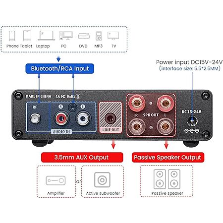 AIYIMA A01 Pro 2-Channel 100W Amplifier w/ Bluetooth 5.1 $47.99