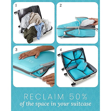 - Maximize space: Saves up to 50% more space compared to traditional packing cubes. Fit more in your suitcase without sacrificing organization. Easily compress the cubes using the exterior compression zippers, making packing and unpacking a breeze.