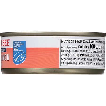 5-Oz Bumble Bee Skinless & Boneless Chunk Light Pink Salmon in Water $1.52 w/ S&S + Free Shipping w/ Prime or on $35+