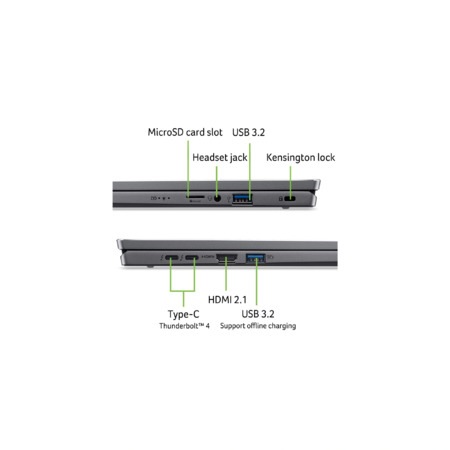 - 2x USB-C Thunderbolt 4 (40 Gbps, Power Delivery 100W)