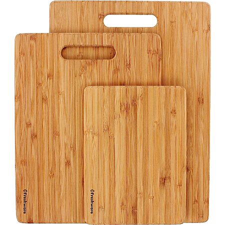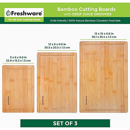 Model: Bamboo Cutting Boards for Kitchen [Set of 3] Wood Cutting Board for Chopping Meat, Vegetables, Fruits, Cheese, Knife Friendly Serving Tray with Handles