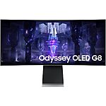 Samsung - Odyssey OLED G8 34" Curved WQHD FreeSync Premium Pro Smart Gaming Monitor with HDR400, (Micro DP, Micro HDMI, USB) - Silver $849.99