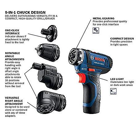 Bosch 12V Flexiclick 5-In-1 Cordless Multi-Head Electric Screwdriver Drill Set