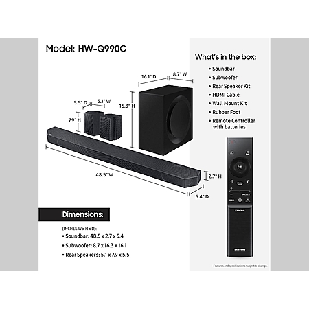 Samsung has for Samsung EDU/EPP Members: Samsung Q-series 11.1.4 ch. Wireless Dolby ATMOS Soundbar + Rear Speakers w/ Q-Symphony (HW-Q990C, 2023) on sale for $689.92. Shipping is free.