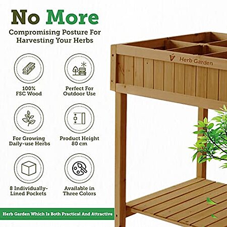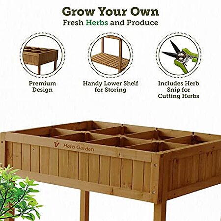 $66.10: VegTrug 8 Pocket Herb Garden, Wooden Herb Planter with Herb Snips (Natural) at Amazon