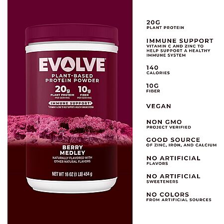 2-Pack 1-lb Evolve Plant Based 20g Protein Powder (Berry Medley) $15 + Free Shipping w/ Amazon Prime