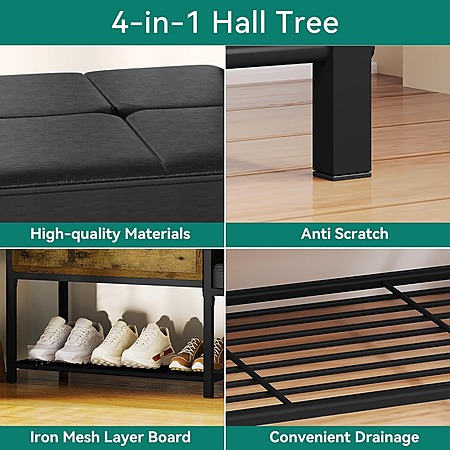 Yitahome Shoe Rack w/ Cushioned Storage Bench & Seat (Rustic Brown) $47.25 + Free Shipping