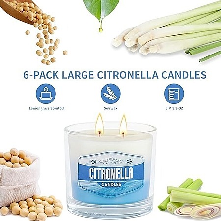 6-Pack 10oz 2 Wick Citronella Outdoor Candles $13.49 + Free Shipping w/ Prime or $25+ orders