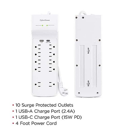 [YMMV] [HOME DEPOT] CyberPower 10-Outlet Surge Protector with USB and 4 ft. cord, White, $13