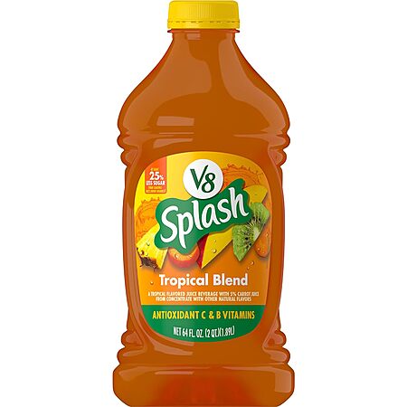 Amazon has 64-Oz V8 Splash Juice Beverage (Tropical Blend or Orange Pineapple) on sale for $2.18 - 20% off when you 'clip' the coupon on the product page - 5% off when you checkout via Subscribe & Save = $1.63. Shipping is free w/ Prime or on $35+ orders.Thanks to Community Members CoolKestrel1061 and BigBG for sharing this deal.