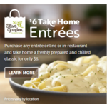 Olive Garden Meal Special: Buy One Meal at Menu Price & Take One Entree Home for $6