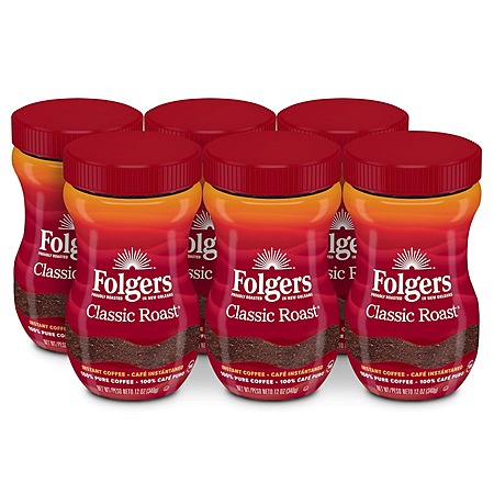 6-Pack 12-Oz Folgers Instant Coffee (Classic Roast) for $44.91 -