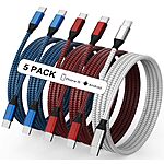 5-Pack 60W USB-C to USB-C Nylon Braided Charging Cables (3/3/6/6/10-FT)