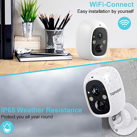 TOPVISION Wireless Security Camera, 2K WiFi Camera for Indoor Outdoor $9.99 + FS