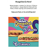 Looks like HoagieFest is back at Wawa. They basically offer discounted subs for most of the summer. Shorti hoagies are $5 and Classic hoagies are $6. It's nothing spectacular, but it's a couple bucks off and their subs are actually pretty good.