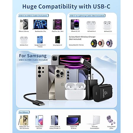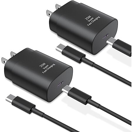2Pack 25W USB C Fast Chargers with 2x 6Ft USB C Cables - $5.39