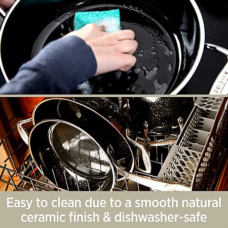 "The natural ceramic finish is ultra-durable, resisting chips & scratches, and while ceramic is not considered a nonstick coating, it does resist stains and is easy to clean"