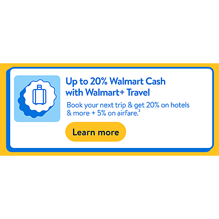 Walmart+ member days also have exclusives and specials for members. Powered through Expedia, get up to 20% Walmart Cash on hotels, car rentals & more (plus 5% Walmart Cash on flights!) to use on future purchases. Subject to Walmart Cash terms & Walmart+ terms.