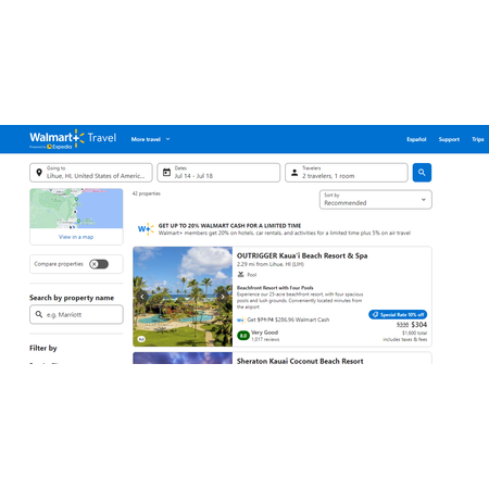 I did a mock reservation (see screenshot) for Kauai Hawaii, peak summer. Prices are very comparable to what's out there except you'll get Walmart+ cash back. Honestly, really not bad.