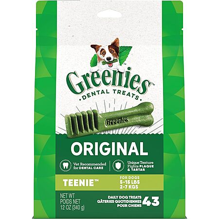Greenies Original Teenie Natural Dental Care Dog Treats: 96-Treats $28.20 + $6 Amazon Credit 43-Treats $15.18 + $3.20 Amazon Credit $15.18 w/ S&S+ Free Shipping w/ Prime or on $35+