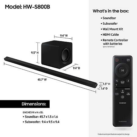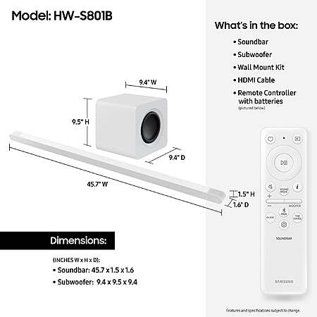 SAMSUNG 3.1.2ch Soundbar w/ Wireless Dolby Atmos (HW-S801B/ZA, HW-S800B/ZA)