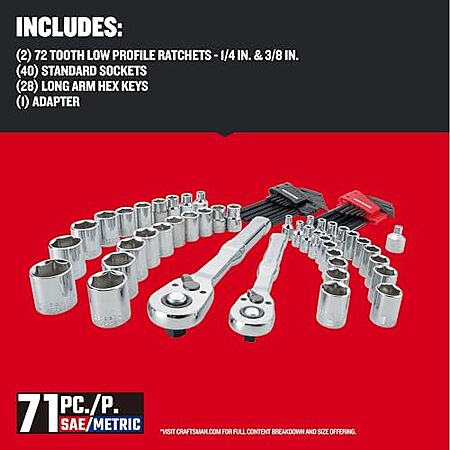 $49.98: 71-Piece CRAFTSMAN Versastack Mechanics Tool Set, 1/4 and 3/8 Inch Drive (CMMT45171) at Amazon