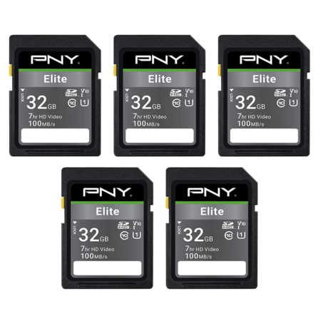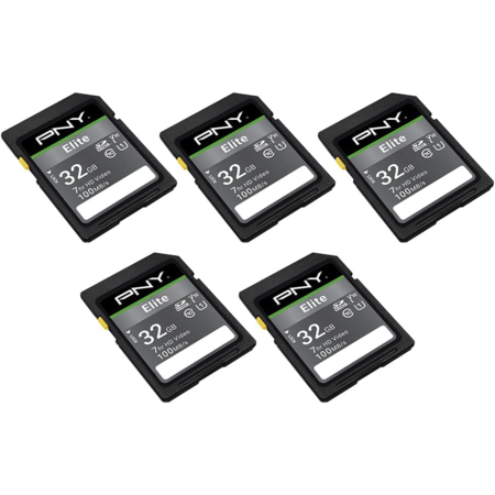 $15: 5-Pack 32-GB PNY Elite Class 10 U1 V10 SDHC Flash Memory Card at Amazon