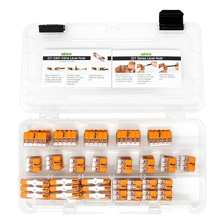 90-Pc WAGO 221 Lever-Nuts Compact Splicing Wire Connector Assortment w/ Inlines