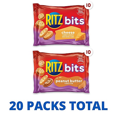 20-Pack Ritz Bits Cheese + Bits Peanut Butter Cracker Sandwiches (Variety Pack) for $6.98 -