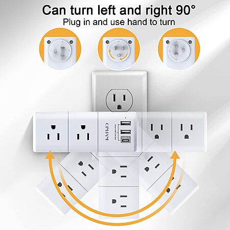 RONGPUDA TECH via Amazon has QINLIANF 6-Outlet Power Outlet Extender w/ 1800J Surge Protection, Rotating Plug & 3x USB Ports on sale for $9.98 - 50% when you 'clip' the coupon on the product page = $4.99. Shipping is free w/ Prime or on orders of $35 or more.