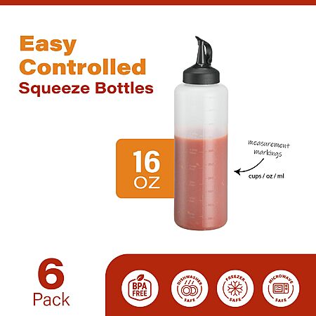 6 Pack - 16 OZ Condiment Squeeze Bottles for Sauces $12 w/APrime