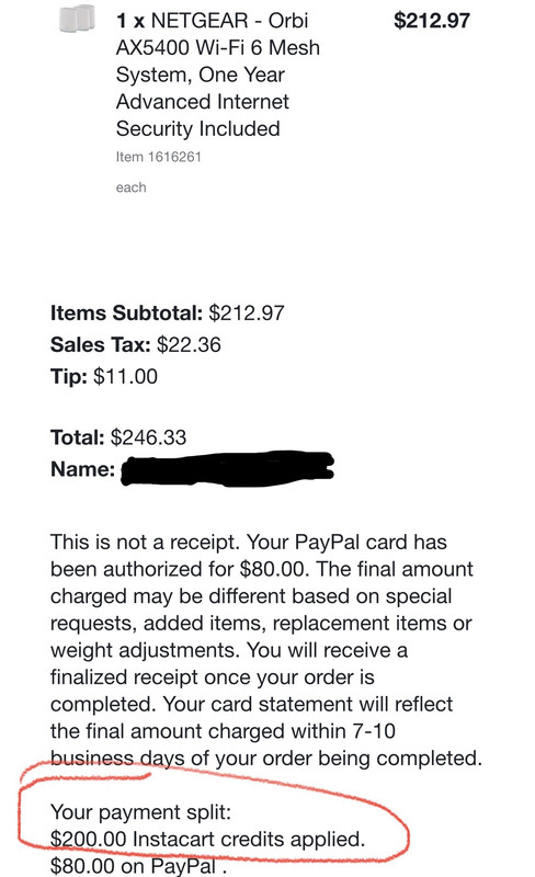 FYI — if you are absolutely positive that you can purchase it through Instacart, you can save an additional $40 dollars by buying two $100 Instacart gift cards for $160 using the deal below and redeeming them when purchasing this.