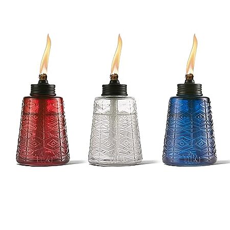 $16.25: 3-Pack TIKI Brand Molded Glass, Decorative Table Top Torch (1117213, Red, White and Blue) at Amazon