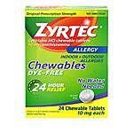 24-Count Zyrtec 10mg Cetirizine HCI Allergy Chewable Tablets (24-Hour Relief) for $9.37 -